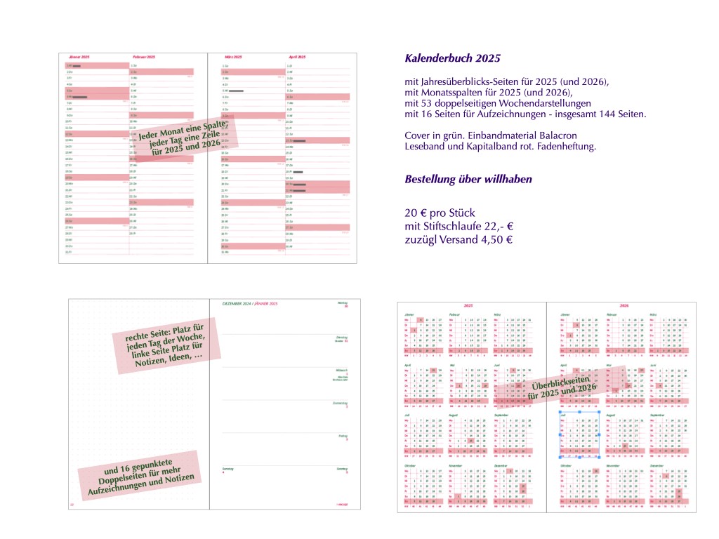 spät im Leben habe ich Kalender selbst entwickelt und produziert